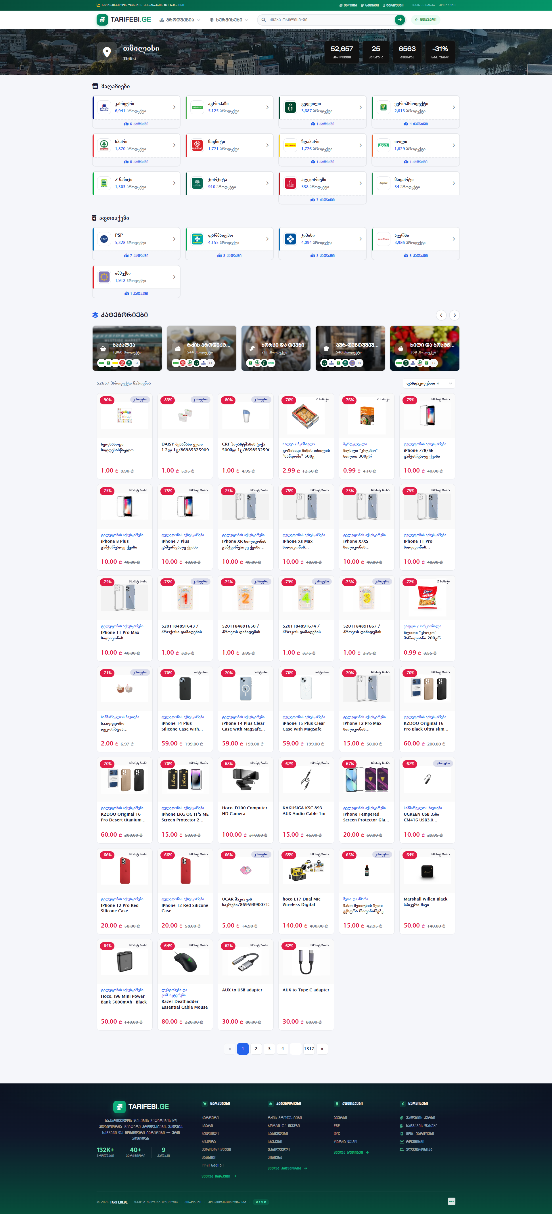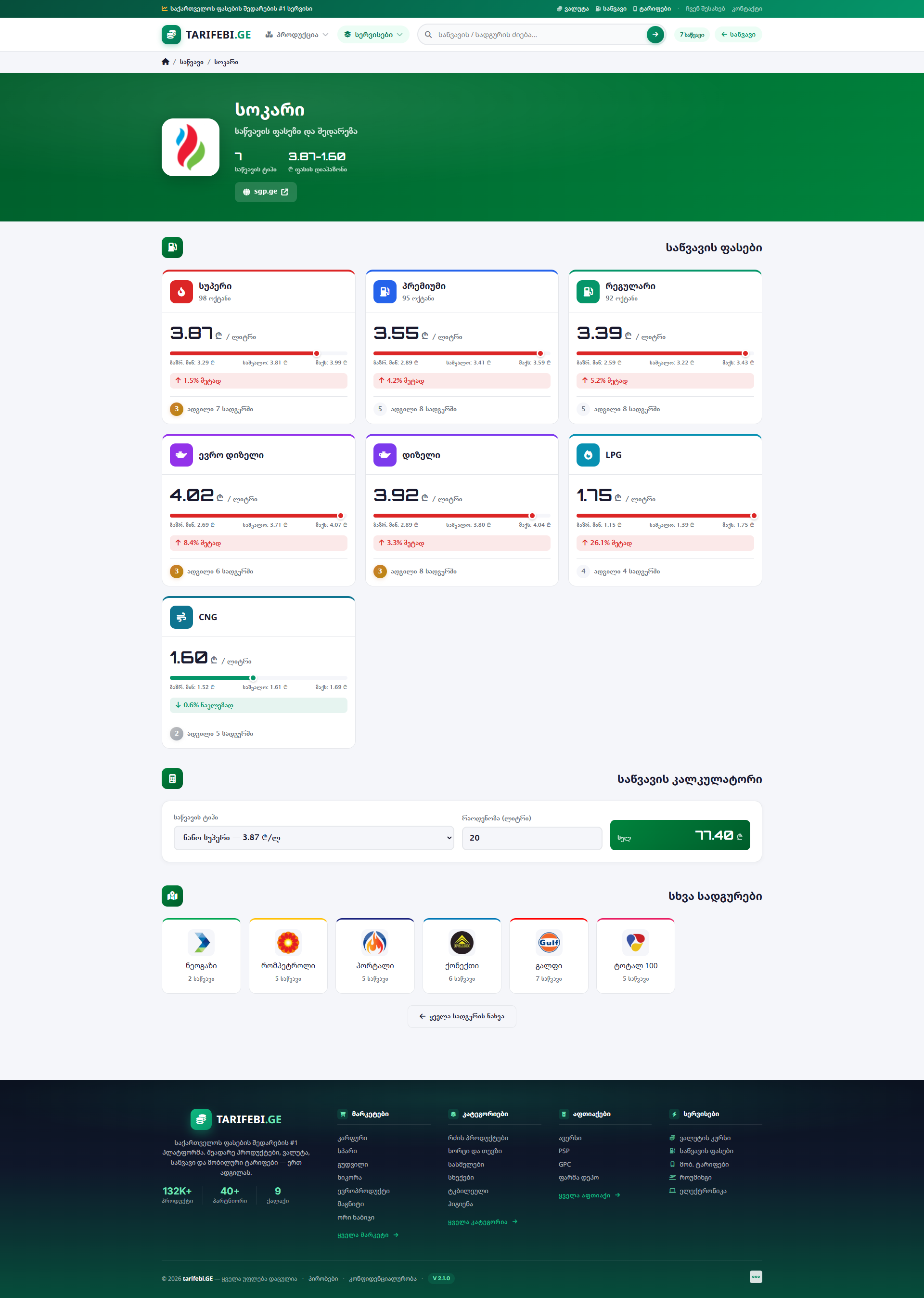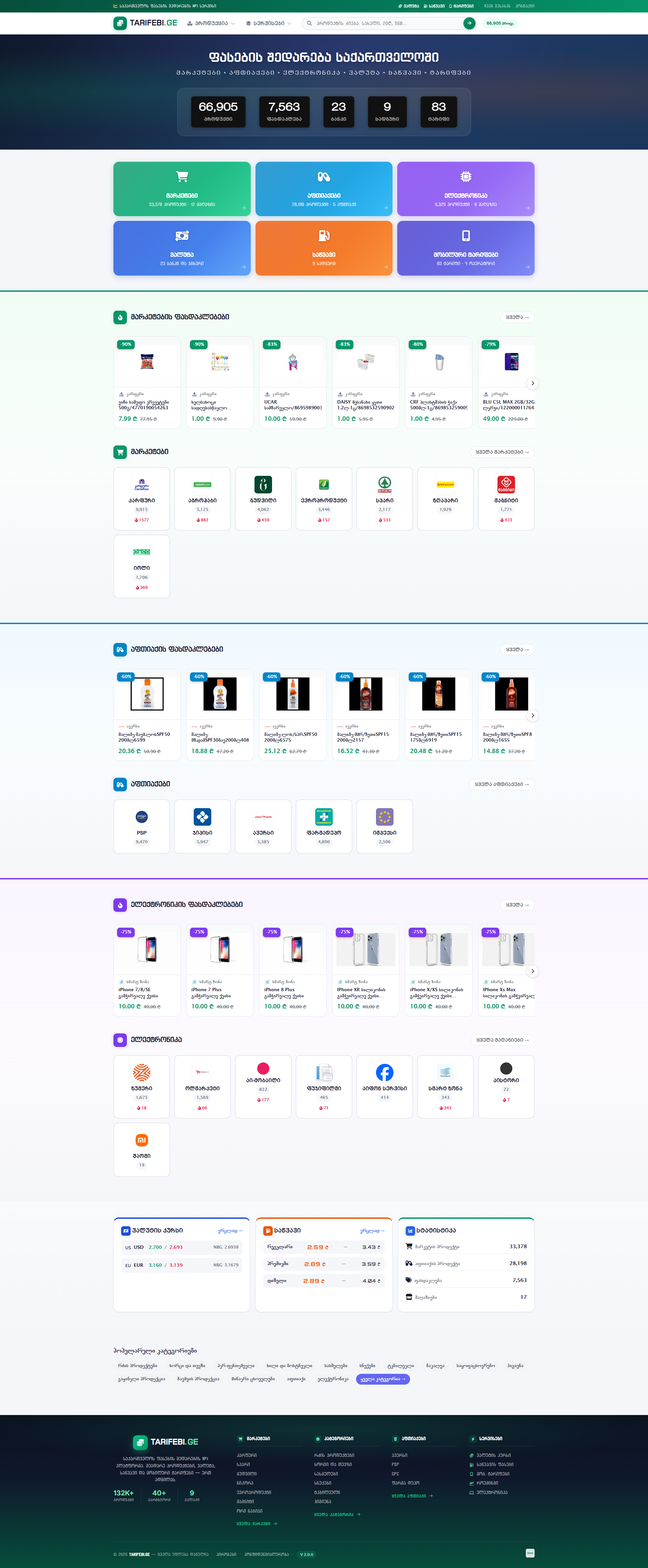 საქართველოს ფასების შედარების #1 პლატფორმა. შეადარე პროდუქტები, ვალუტა, საწვავი და მობილური ტარიფები — ერთ ადგილას.
