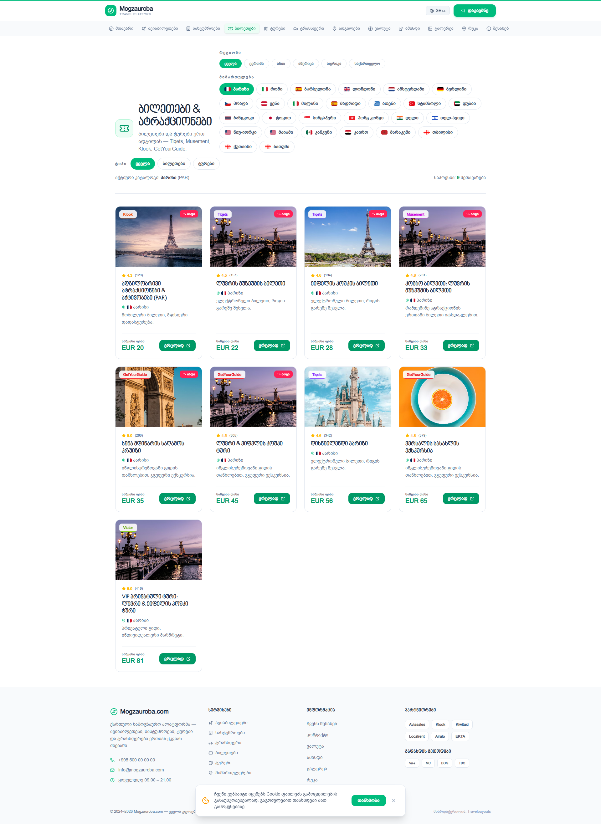 ავიაბილეთები, სასტუმროები, ტურები, ტრანსფერები — ყველაფერი ერთ პლატფორმაზე. ყველაზე დაბალი ფასები 18+ პროვაიდერიდან