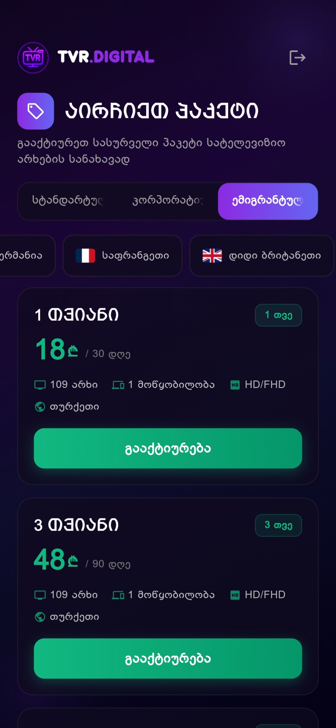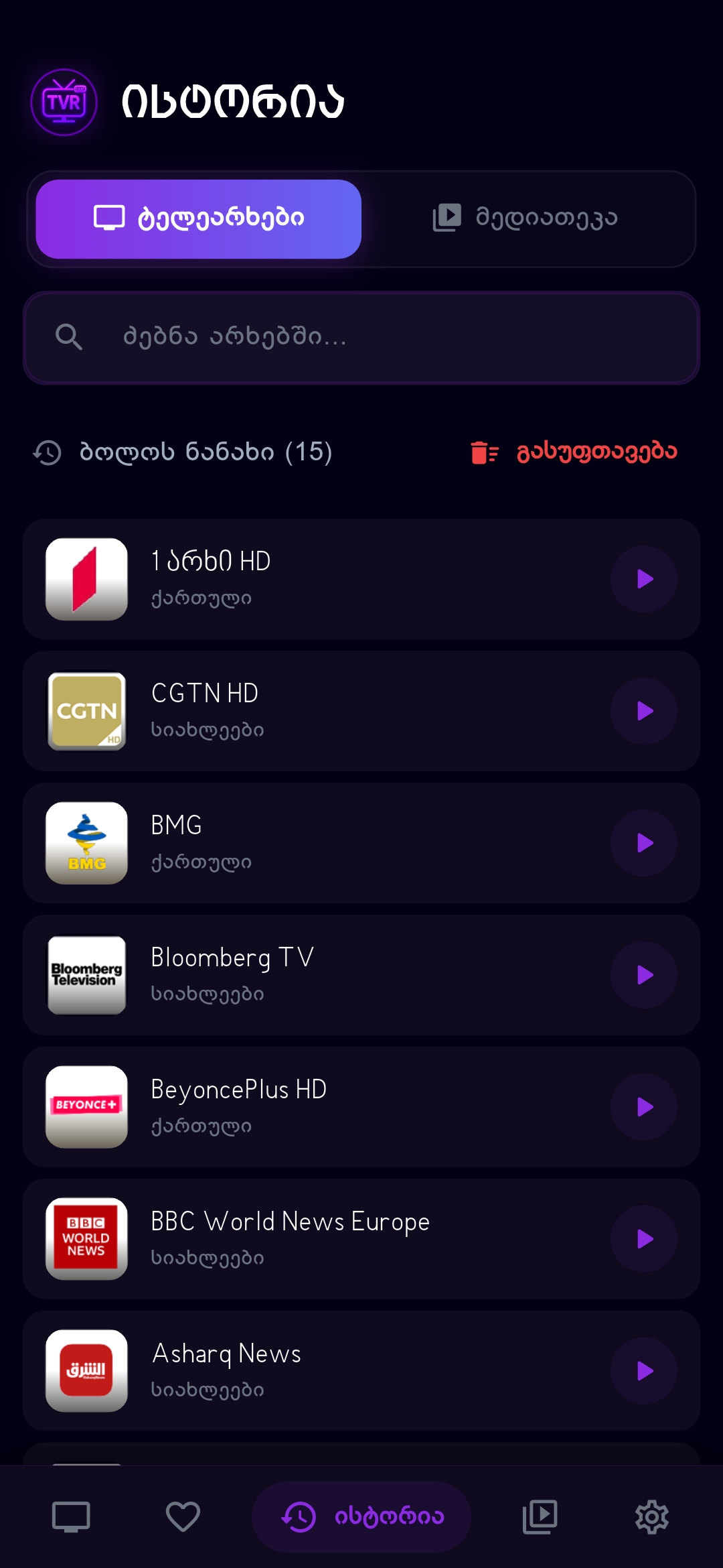 პირდაპირი ეთერის სტაბილური სტრიმინგი მრავალფეროვანი არხებით.