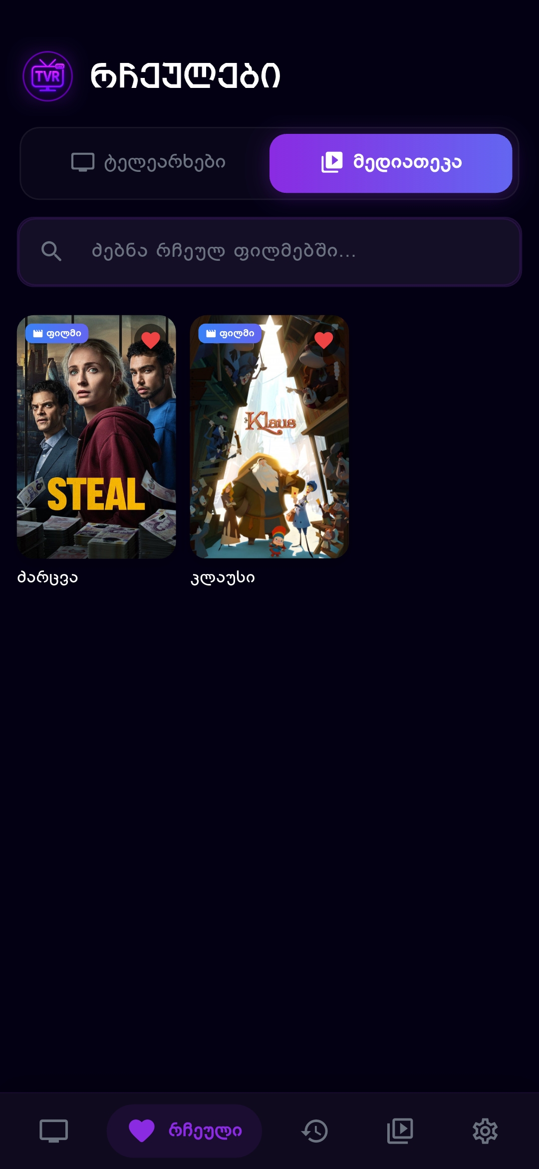 ნანახი არხების ისტორია და ფილმების კატალოგი (VOD).